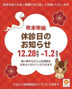 お知らせ2025年12月29日来年も安心して通える接骨院あるために